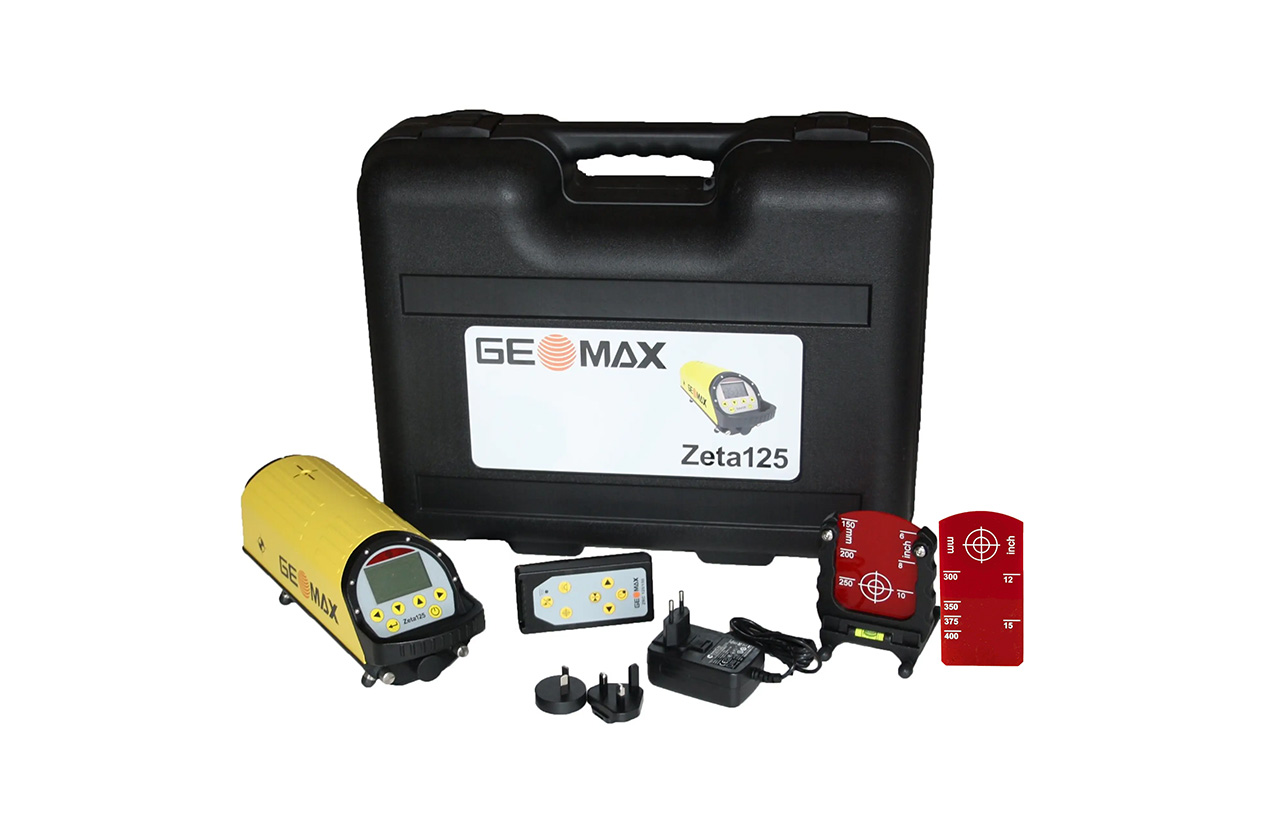 The GeoMax Zeta 125 pipelaying laser is a compact, high-precision instrument designed for accurately setting line and grade during pipe installation, particularly in drainage and sewer construction. It projects a clearly visible laser beam along the pipe run, allowing operators to maintain correct alignment and slope over long distances with minimal error. The unit features fast self-levelling, cross-axis compensation, and optional automatic target alignment, which improve efficiency and reduce setup mistakes on site.