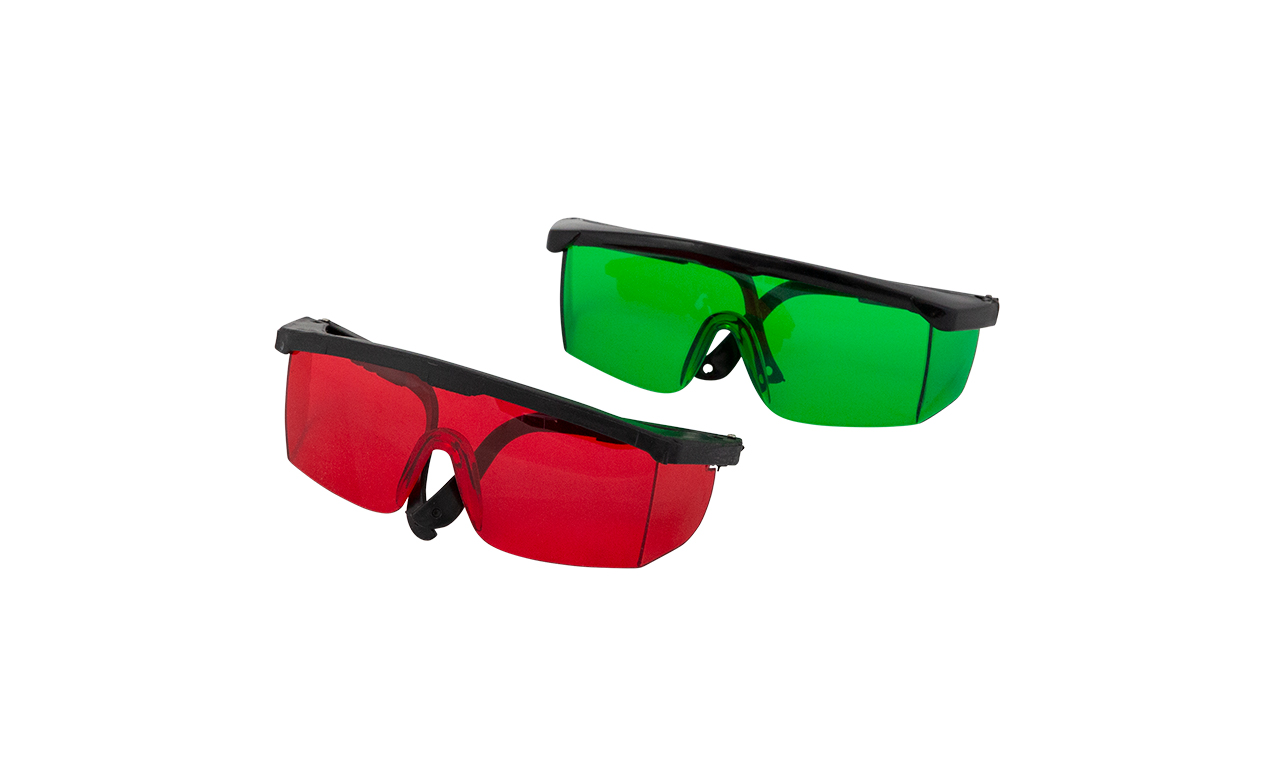 The laser enhancing glasses help by enhancing the visibility of the laser beam reflections when working indoors. Available in red and green versions for working with red and green beam lasers respectively.