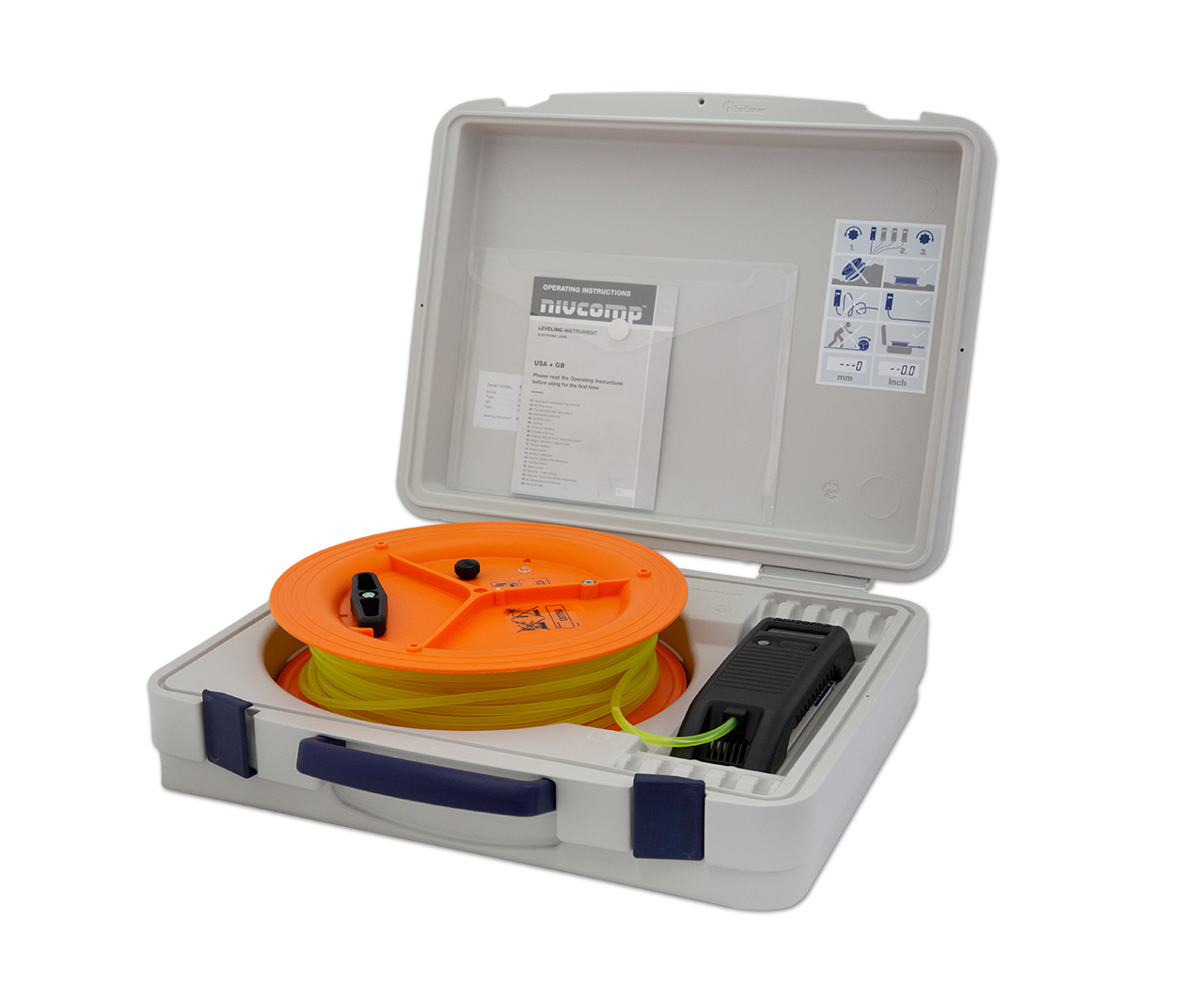 Nivcomp is the first leveling instrument of its kind to let you work alone and even around corners with better than 2 mm precision and cover up to ± 2.5 meters vertically over a 48 m radius. Nivcomp directly displays vertical measurements on a LCD, in large, easy to read digits, unlike conventional builderís optical and laser levels.